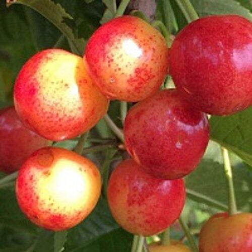 Саженцы черешни Соперница подарят вам крупные, сердцевидные плоды весом около 6,8 граммов. Основная окраска плода желтая, а покровная — красная, что добавляет эстетической привлекательности и делает черешню непохожей на другие сорта. Плотная кожура защищает плоды от повреждений, а сочная мякоть имеет насыщенный желтый цвет и великолепный сладкий вкус с дегустационной оценкой 4,8 балла. Цвет сока прозрачный, а отделяемость косточки от мякоти хорошая.