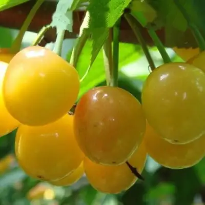 Мякоть черешни «Янтарная» нежная, светло-желтая, с высоким содержанием сока, который остается бесцветным. Вкус сладкий и сочный, что навсегда завоюет ваше сердце и порадует ваших близких. Срок потребления плодов – с конца июня до начала июля, что позволяет наслаждаться свежими фруктами в разгар лета.