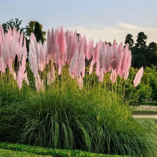 Если вы ищете эффектное растение, способное задать настроение всему участку, розовая пампасная трава — идеальный выбор. Её воздушные метёлки создают ощущение лёгкости и роскоши, а сама культура стала «визиткой» современных ландшафтных проектов.
