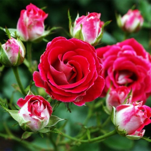 Главное достоинство сорта — яркое, стабильное цветение. Бутоны среднего размера (около 5 см) распускаются в насыщенные малиново-красные цветки с кремовой изнанкой лепестков. Цветки махровые (до 30 лепестков), собраны в кисти по 5–8 бутонов. Цветение обильное и длительное — с начала июня до заморозков. Цветы не теряют форму от дождя, не выгорают на солнце, сохраняют декоративность в течение нескольких дней. Аромат — лёгкий, мягкий, ненавязчивый.