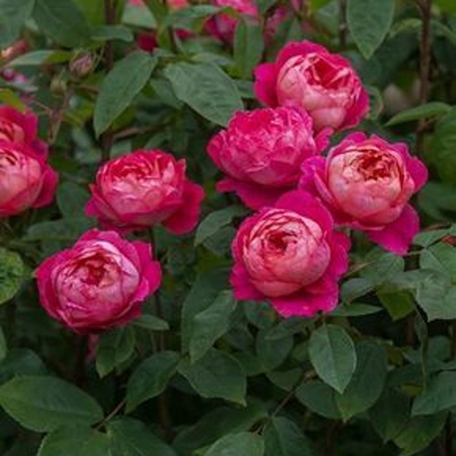 Главное достоинство сорта — редкий цветок сложного кораллово-малинового оттенка. В распуске бутон демонстрирует насыщенный красно-оранжевый тон с переходами в винно-розовую гамму. Цветки крупные, 8–10 см в диаметре, густомахровые, чашевидной формы, собраны в небольшие кисти по 3–5 штук. Цветение — волнами с июня по октябрь, с быстрым восстановлением бутонов после срезки. Аромат стойкий, глубокий: слива, груша, малина, вино — и всё это в одном цветке.