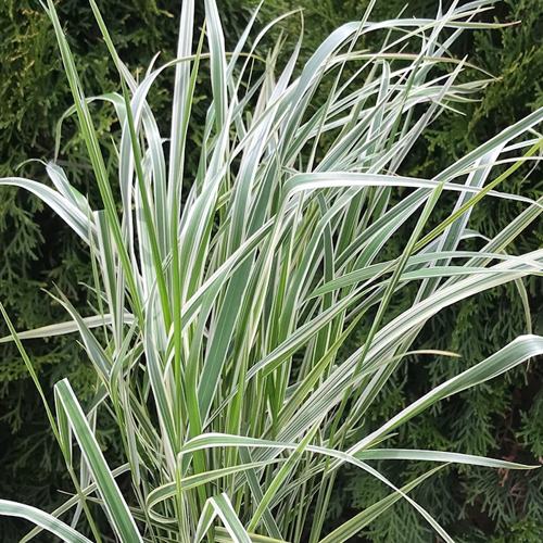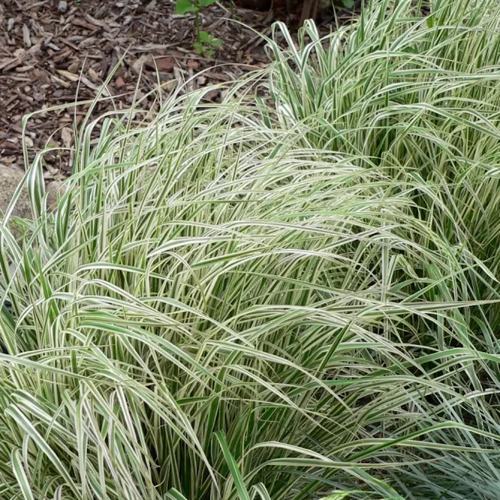 Листья у Овердам — узкие, линейные, с кремовыми краями на зелёном фоне. Эта пестрая окраска делает растение заметным даже без цветения. В июле вейник выпускает прямостоячие метёлки длиной до 20 см — сначала светло-розовые, затем насыщенно-коричневые. Они остаются вертикальными даже под снегом и ветром, добавляя текстуру в зимний ландшафт. Максимальная высота — до 130 см, листовая масса — около 50 см. Крона плотная, узкоколонновидная, без развала.